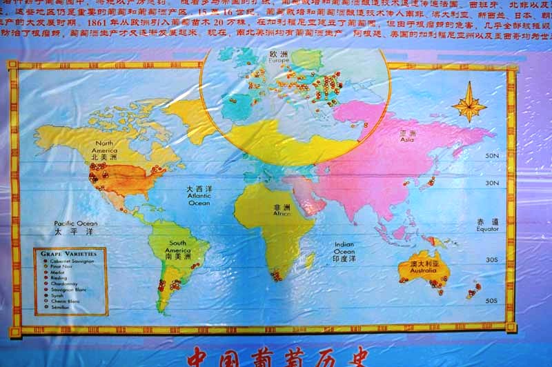A big drawing shows which kind of grapes are grown around the world.